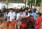 Ao longo da oficina, crianças com dificuldade visual, sensorial e motora, tiveram a oportunidade de experimentar o ambiente rural, por meio do tato com ovinos e caprinos, emissão de sons, entre outros estímulos, gerando respostas emocionais favoráveis.
