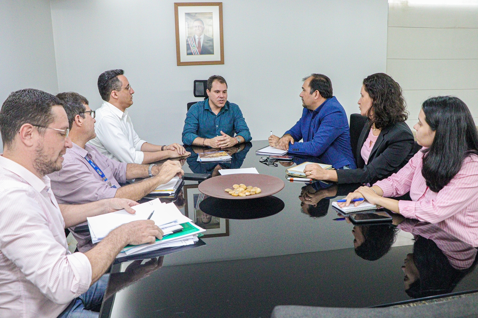 Para tratar das estratégias de desenvolvimento do programa, o secretário Cassiano Pereira Junior, da Seinc, reuniu, na noite da última terça-feira (10), com o presidente da Fapema, André Santos - também participaram da reunião: o coordenador de Inovação, Mauricio Sá; a assessora de Planejamento, Kiany Cavalcante; e a coordenadora do setor de Convênios, Eva Daniele Pedrosa, todos da Fapema.